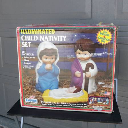 Empire BLOW MOLD 3 Piece Child Nativity 1996 Lighted Tested Original Box Jesus