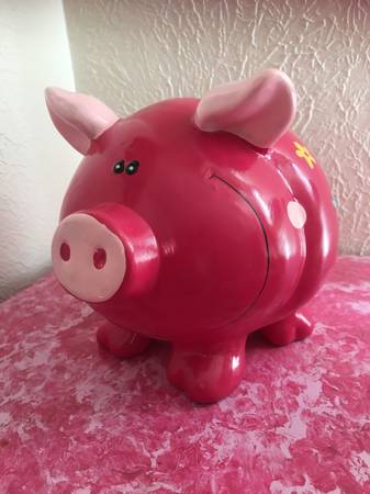 NEW vintage pink cloth gingham check basket filled with baby items, rattle, bottle, etc, $20