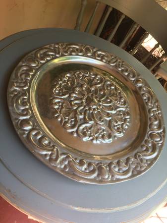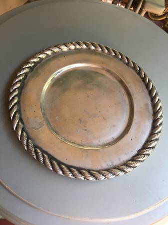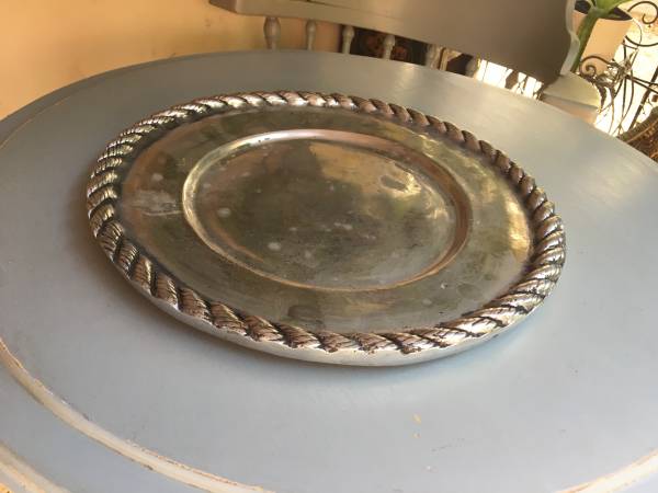 Photos 1-6: 12" Round tray with rope trim, charger plate or fancy serving platter, $50