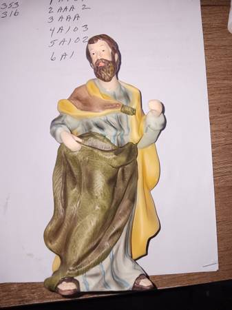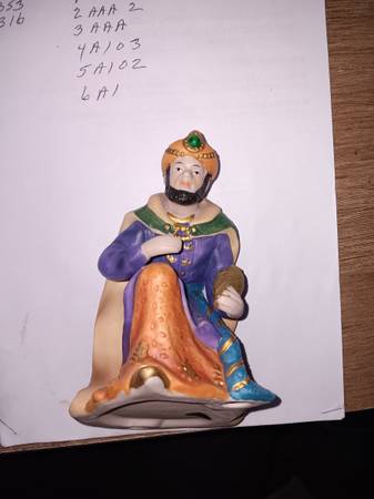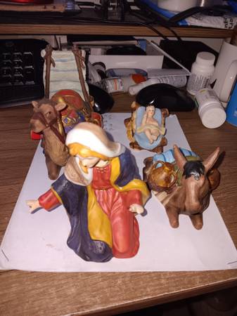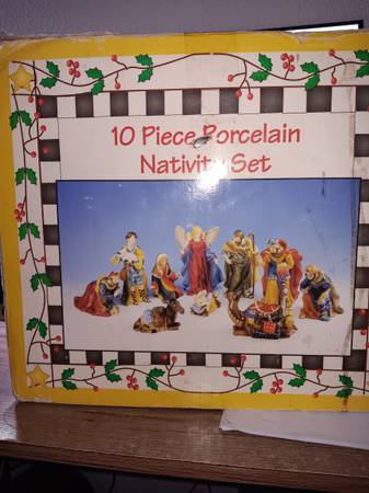 9 piece Porcelain Nativity Scene 10 piece head fell off and can be glued back on.