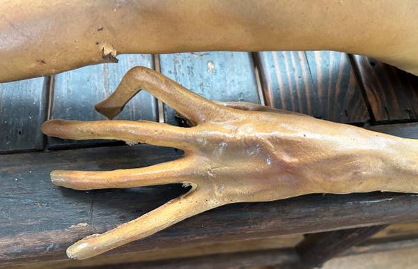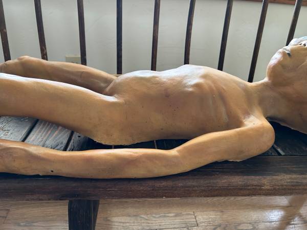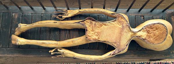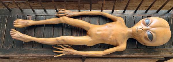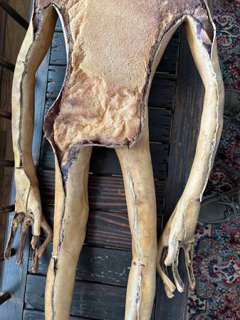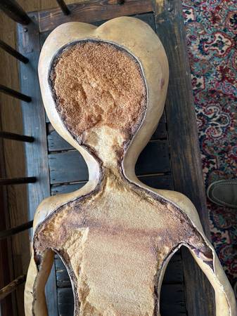 This is a life-size (47in) Roswell alien from the 1970's original X-Files television series used in the autopsy scenes in the show. I believe only 75 of these were made for the show then locked in a vault in the 90's until they were sold in a public auction. This was purchased an auction in Los Angeles in 2010. This prop surprisingly shows little ware because it been stored of years. The back is flat since only the front was seen. It is filled with foam.
