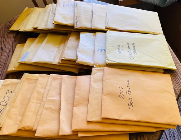 RARE SACRAMENTO DIXIELAND JAZZ JUBILEE 1978-2015 ARCHIVES. INCREDIBLE FIND. ALL YEARS FROM 1978 THRU 2015 (YEAR 2011 IS MISSING). EACH YEAR IS DOCUMENTING IN A MANILA ENVELOPE WITH PROGRAMS, NEWSPAPER ARTICILES, PHOTOS, HANDWRITTEN NOTES OF BANDS AND TIMES, SPONSORED RESTAURANTS & HOTELS, BAND LEAFLETS, ETC. I POSTED PHOTOS OF TYPICAL CONTENTS OF FOLDERS FOR YEARS 1999, '89,'78, 94, & 2015. DOUBT THAT YOU WILL FIND A MORE ARCHIVAL GROUP OF HISTORICAL SACRAMENTO JAZZ JUBILEE DOCUMENTS ANYWHERE ELSE. $150