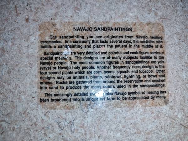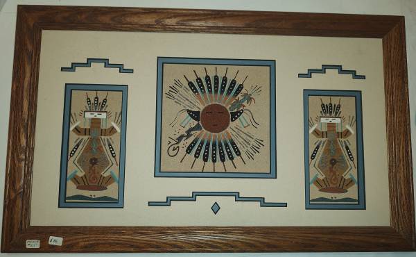 Vintage Navajo Native American Sand Painting in Wood Frame with documentation on back of painting. Three paintings uniquely matte n framed together to create a one of a kind painting Reduced from...