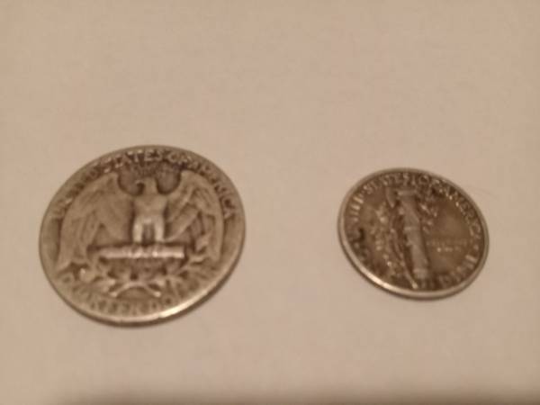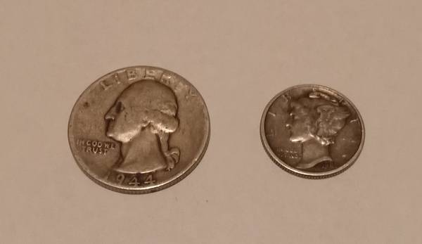 United States 1944 Quarter & 1943 Mercury Dime Silver Coins - $20 (Sacramento, Ca)