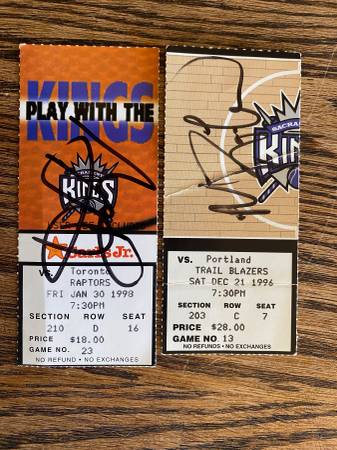 3, SIGNED TICKET STUBS. TORONTO RAPTORS 1/30/1998, PORTLAND TRAIL BLAZERS 12/21/1996, & ROUND 1 GAME A 4/30/1966