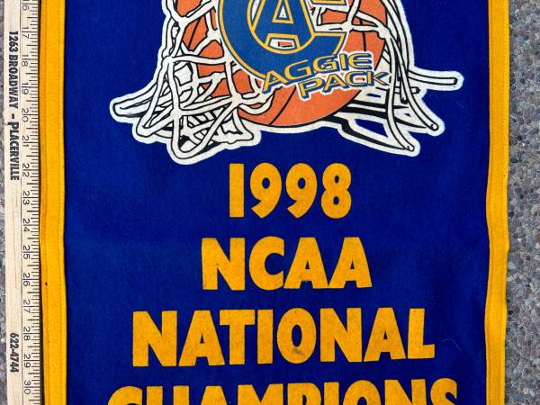 VINTAGE 1998 UC DAVIS DIVISION II NCAA NATIONAL CHAMPIONSHIP BANNER. BEAUTIFUL CONDITION. $50
