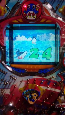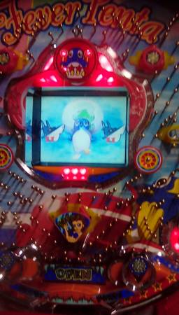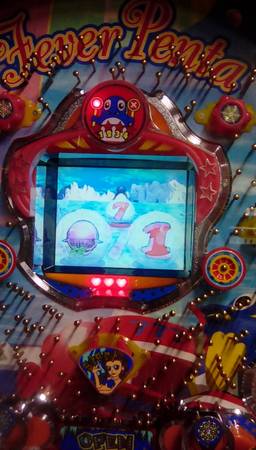 This is a penta fever modern pachinko machine. It is in excellent working condition. All lights and sound are bright and loud. It has a penguin and snowmobiles theme, it goes from day to night scenes. The dongle is included, which allows you to connect battle counters and other devices such as computers and wireless networks. Pachinko balls are not included,you can purchase them online from several different sites. You'll need about a thousand balls as when it goes into fever mode it pays out a crazy amount of balls. I have pachinko balls here to test and play the game. Just not for sale. This game is a lot of fun to play and when it goes into the fever it's extremely exciting!