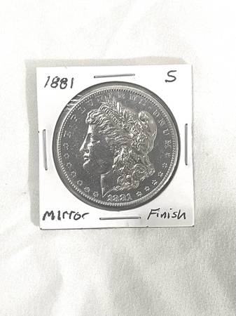 About uncirculated-AU(50) rare find mirror like 1881-S Morgan silver Dollar. Valued over $90
