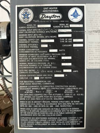 Dayton unit heater Don’t much about it but could be ran as propane or natural gas 50 obo