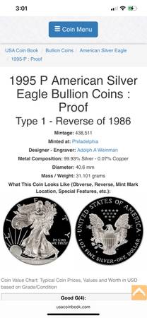 Mint condition sealed in capsule with case 1995-P silver American Eagle proof. Valued at $163 on US Coin book. Some are worth more.