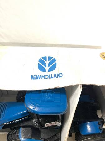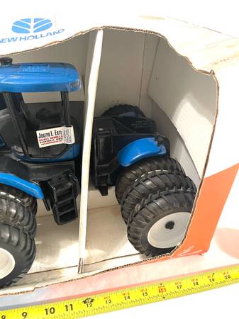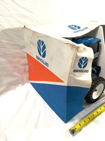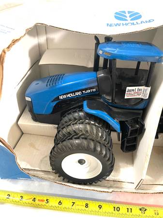 (Rare find) made in the USA by toy maker (ERTL) in the 1980s. Scale 1/16 diecast (New Holland-TJ375) four-wheel-drive dual tires toy farm tractor. These retail online for $595. On sale for $450. These are very rare hard to find most are out of stock not many were made. This is a very large toy very collectible. I’ll accept $300 which is a deal.
