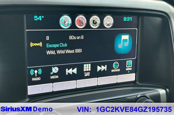 Traction control, 6-Speaker Audio System, Standard Suspension Package, ABS brakes, Engine Block Heater, Electronic Stability Control, Dual front side impact airbags, Air Conditioning, Speed control, Brake assist, Steering wheel mounted audio controls, Front Halogen Fog Lamps, Front wheel independent suspension, Heavy-Duty Trailering Equipment, Single Slot CD/MP3 Player, Occupant sensing airbag, Preferred Equipment Group 1LT, Remote keyless entry, Front anti-roll bar, Emergency communication system: OnStar Guidance, 110-Volt AC Power Outlet, Remote Vehicle Starter System, Dual front impact airbags, Steering Wheel Audio Controls, Power windows, Digital Steering Assist, Passenger cancellable airbag, Low tire pressure warning, Tilt-Wheel/Telescoping Steering Column, Panic alarm, Unauthorized EntryTheft Deterrent System, HD Radio, Dual-Zone Automatic Climate Control, 4-Wheel Disc Brakes, CD player, Radio: AM/FM Stereo w/Chevrolet MyLink, Electric Rear-Window Defogger, Power steering, LT Convenience Package, SiriusXM Satellite Radio, Premium audio system: Chevrolet MyLink, Exhaust Brake, AM/FM radio: SiriusXM, 6 Speakers, Overhead airbag, Power Windows w/Driver Express Up & Down, Remote Keyless Entry, Remote Locking Tailgate, Fully automatic headlights, Delay-off headlights