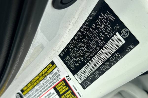 Driver door bin, 4-Wheel Disc Brakes, Rear window defroster, Panic alarm, Exterior Parking Camera Rear, Steering wheel mounted audio controls, Turn signal indicator mirrors, Overhead airbag, Four wheel independent suspension, Convenience Package, Smart Key System, Bumpers: body-color, Driver vanity mirror, Radio: Toyota Audio Multimedia w/8" Touchscreen, Remote keyless entry, Automatic temperature control, 6 Speakers, Dual front side impact airbags, Radio: Toyota Audio Multimedia w/12.3" Touchscreen, ABS brakes, Rear anti-roll bar, Heated door mirrors, Auto-Dimming Rearview Mirror w/HomeLink, Auto High-beam Headlights, Speed-sensing steering, Low tire pressure warning, Fully automatic headlights, Front anti-roll bar, Dual front impact airbags, AM/FM radio: SiriusXM, Power driver seat, Power steering, Brake assist, Front dual zone A/C, Power windows, Knee airbag, Radio data system, Traction control, Air Conditioning, Electronic Stability Control, Emergency communication system: Safety Connect (up to 10-year trial subscription), Security system, Spoiler, Front reading lights, Rear side impact airbag, Speed control, Apple CarPlay/Android Auto, Power door mirrors, Occupant sensing airbag, Delay-off headlights