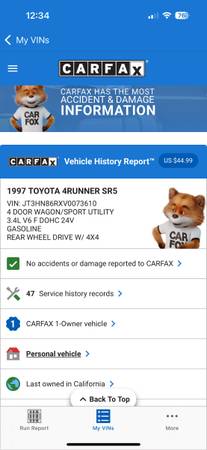 JUST ARRIVED! 1997 TOYOTA 4Runner SR5 4x4 ! They don’t make them like this anymore! ONE 1️⃣ OWNER! Excellent service record. CARFAX REPORT AVAILABLE. Always serviced on time. TIRES are practically new. Over $5k worth of services. Recent service include valve cover gasket replacement. NO ACCIDENTS. Runs and drives absolutely great ! No issues. Well taken care of. CLEAN TITLE ✅ SMOG ✅