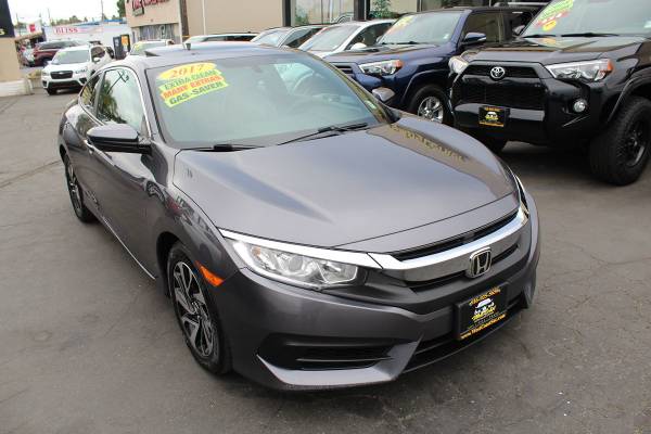 Trim: LX-P coupe Mileage: 131k miles Exterior Color: Interior Color: BLACK Engine: 2.0L 4 Cylinders Drive: fwd Transmission: Automatic VIN: 2HGFC4B06HH300818 Seller Comments: Get the fun rolling with our Accident Free 2017 Honda Civic Coupe LX-P Coupe, which is a winning combination of style and practicality in Modern Steel Metallic! Powered by a 2.0 Liter 4 Cylinder that offers 158hp connected to an innovative CVT.This can-do Front Wheel Drive coupe takes you further with brilliant handling and a comfortable ride, yielding nearly 39mpg on the highway.Step up to the bold, aggressive stance of our LX-P, which features a dash of sporty sophistication with signature LED daytime running lights, a sunroof, and beautiful alloy wheels. Inside our LX-P, you will appreciate remote engine start, which lets you easily start your car with a button.At the same time, the automatic climate control adjusts the temperature before you even get in.The interior has been intuitively designed to fit your demands, with excellent storage options, incredible visibility, and a wealth of amenities, including a pushbutton start, full power accessories, and a rear camera.The central display screen, Bluetoothยฎ phone and audio, and a sound system with a USB port keep you safely connected. Honda raises the bar with its legendary reputation for safety designed with stability control, ABS, and advanced airbags.An outstanding blend of comfort, efficiency, and fun.This Civic Coupe LX-P coupe is a wise choice you'll love for years to come.Save this Page and Call for Availability.We know you will enjoy your test drive Toward Ownership! Our vehicles all come with an anti-theft protection plan which is an additional $299 and provides up to $5,000 coverage for 3 years.* * See dealer for details