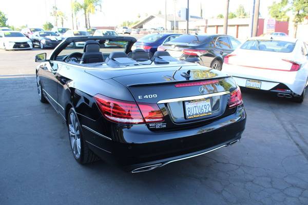 Trim: RWD Cabriolet Convertible Mileage: 93k miles Exterior Color: Black Interior Color: Black Engine: 3.0L 6 Cylinders Drive: rwd Transmission: Automatic VIN: WDDKK6FF8HF360925 Seller Comments: Our fabulous 2017 Mercedes-Benz E 400 Cabriolet presented in Black will impress you with its sensational performance and incredible refinement.Motivated by a Twin TurboCharged 3.0 Liter V6 generating 329hp tethered to a 7 Speed Automatic transmission for brisk acceleration.This Rear Wheel Drive E-Class convertible offers nearly 25mpg on the highway and a memorable driving experience with a smooth, comfortable ride and responsive handling.Our E 400 also stands out with eye-catching styling accented by a power soft top, LED headlamps, and stunning alloy wheels. Our E 400's serene cabin offers high-quality materials, gorgeous wood trim, and plentiful amenities to pamper and cosset you.Heated power leather front sports seats with memory, a multi-function steering wheel, ambient lighting, and dual-zone automatic climate control are just a few of the niceties on hand.Additionally, you can stay on track and entertained with the full-color COMAND infotainment system thanks to Bluetoothยฎ, HD radio, an SD card reader, a USB input, and high-fidelity audio. Our Mercedes-Benz offers a wide range of safety technologies to help keep you safe.Forward collision warning, a driver drowsiness monitor, PRE-SAFE collision preparedness, rain-sensing wipers, stability/traction control, ABS, and advanced airbags are just a few of the innovations that surround you.You will love every drive in our E 400! Save this Page and Call for Availability.We Know You Will Enjoy Your West Coast Auto Sales Center Test Drive Towards Ownership! Our vehicles all come with an anti-theft protection plan which is an additional $299 and provides up to $5,000 coverage for 3 years.* * See dealer for details