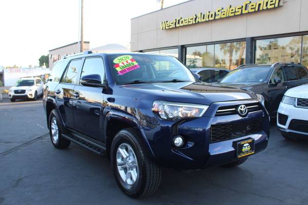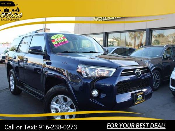 Trim: SR5 Premium suv Mileage: 148k miles Exterior Color: Nautical Blue Metallic Interior Color: Graphite Engine: 4.0L 6 Cylinders Drive: 4wd Transmission: Automatic VIN: JTEBU5JR2L5763132 Seller Comments: Our One Owner, Accident Free 2020 Toyota 4Runner SR5 Premium 4WD in Nautical Blue Metallic takes your everyday driving to the next level! Motivated by a 4.0 Liter V6 that delivers 270hp connected to a 5 Speed Automatic transmission for practical capability.Our Four Wheel Drive SUV also has body-on-frame construction, so it's tough enough for easy towing, and it returns nearly 19mpg on the highway.A distinctive grille adds flair to our rugged 4Runner's LED lighting, fog lamps, alloy wheels, a flip-open liftgate window, and heated power mirrors with built-in turn signals. Room for five and impressive cargo space are standard in our SR5 Premium cabin, along with the comfort and convenience of heated SofTex power front seats, a leather-wrapped steering wheel, air conditioning, keyless access, pushbutton ignition, and power accessories.You're also well connected with an 8-inch touchscreen, full-color navigation, Android Auto/Apple CarPlay, Amazon Alexa and WiFi compatibility, and an eight-speaker audio system. Toyota has your back with a rearview camera and advanced Safety Sense technology that includes adaptive cruise control, lane departure alert, automatic emergency braking, and pedestrian detection.Start your next adventure today in our versatile 4Runner SR5 Premium! Save this Page and Call for Availability.We Know You Will Enjoy Your West Coast Auto Sales Center Test Drive Towards Ownership!