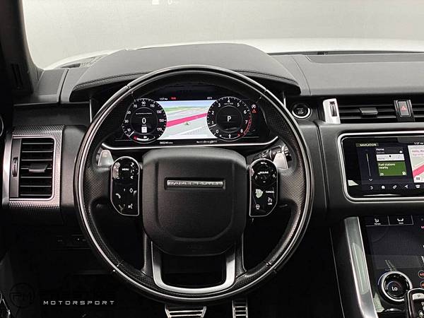 The 2018 Land Rover Range Rover Sport V8 Supercharged Dynamic is an embodiment of sophistication and power, dressed in the glistening elegance of Fuji White. Its impressive stance is completed with 21' Gloss Black 9 Spoke wheels, offering an appeal that marries both power and precision. Under the hood lies a commanding 5.0L 8-cylinder engine, promising exhilaration with every drive, while the V8 Supercharged style ensures you won't miss a beat on the trail or on the highway. Inside, indulge in the plush ambiance marked by the sophisticated Ebony/Ebony/Ebony/Ebony interior that envelops the cabin in luxury. The interior is further complemented by a state-of-the-art Meridian Signature Sound System, delivering a crystal-clear audio experience that enhances every journey. With the Supercharged Dynamic Trim, this Range Rover Sport Makes an unforgettable statement. The four-wheel drive drivetrain ensures unparalleled off-road capability, while maintaining the smooth elegance of city driving. This Range Rover Sport is not just a vehicle; it’s an experience tailored for those who appreciate the blend of innovation, opulence, and performance.