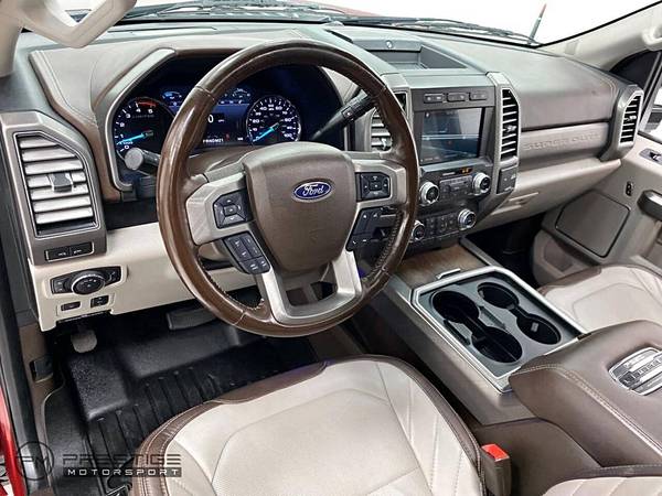 The 2019 Ford Super Duty F-250 SRW Limited 4WD Crew Cab is a robust masterpiece, seamlessly combining power and luxury. With its striking Ruby Red Metallic Tinted Clearcoat exterior, this truck is as bold as it is beautiful. The sophisticated Camelback interior offers a warm and inviting atmosphere, creating a blend of comfort and ruggedness that is hard to match. Under the hood lies a formidable 6.7L 8-cylinder TURBO DIESEL engine, providing unmatched performance and reliability for all your driving needs. Equipped with a high-capacity trailer tow package, this vehicle is perfect for drivers who demand exceptional towing capabilities. For added versatility, stowable loading ramps and a tough bed spray-in bedliner come as part of the package, making loading and protecting your cargo a breeze. Additionally, the individual trailer TPMS helps to ensure safe and efficient trailering by continuously monitoring tire pressure. Designed with an advanced four-wheel-drive drivetrain, this truck handles off-road terrains and challenging weather conditions with ease. The 2019 Ford Super Duty F-250 Super Duty SRW Limited is more than just a workhorse; it's a statement of strength and elegance.