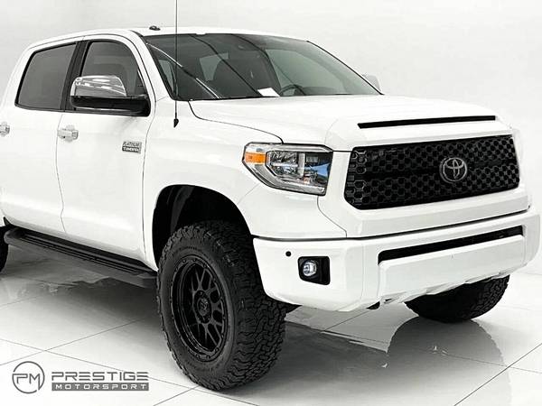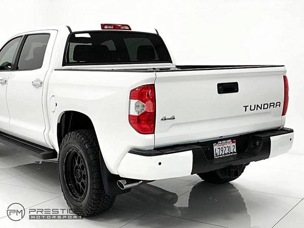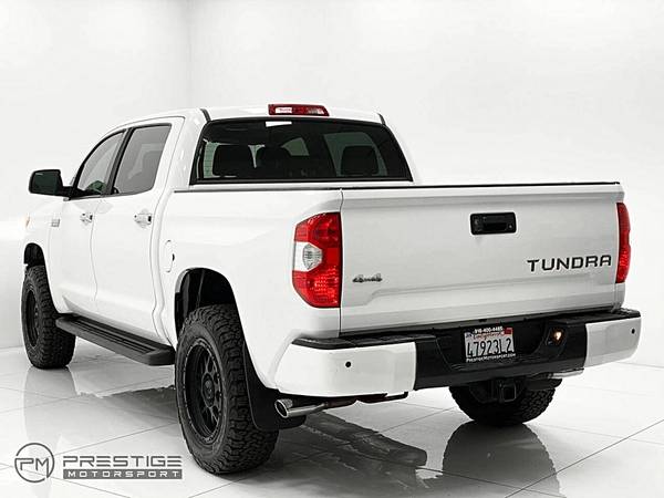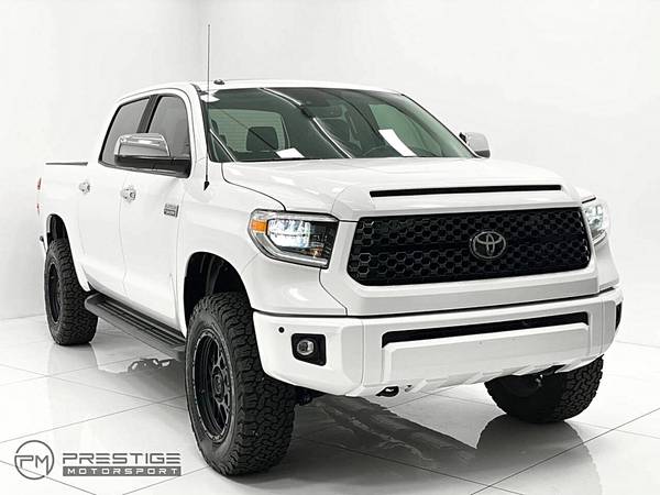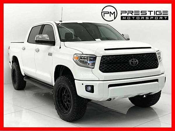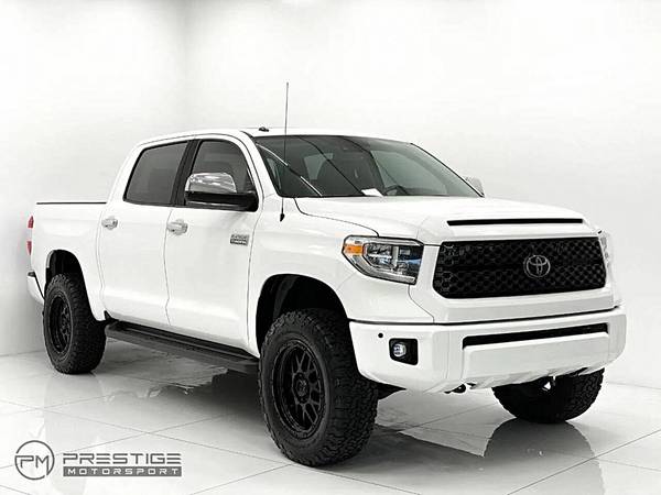 ~ 9 1 6 . 4 0 0 . 4 4 8 5 ~ Call or Text Today! . Apply for Financing and Get Approved Today @ www.PrestigeMotorsport.com . *** AMAZING SERVICE HISTORY Records, 2 Previous Owners, Beautiful White 2019 TOYOTA TUNDRA PLATINUM TRD 4x4 CrewMax Cab TRD Off-Road 4X4 with Serviced ONLY 67k Pampered LOW Miles! LOADED with UPGRADES! ASC 3 Month/3,000 Mile Nationwide WARRANTY -- Buy with Confidence! *** . . Not Your Regular TUNDRA, this one is Limited and LOADED with; . . Year: 2019 Make: TOYOTA Model: TUNDRA Platinum 4x4 Series: CrewMax Cab PLATINUM Trim: Platinum Package 4x4 TRD VIN: 5TFAY5F11KX802433 Stock #: P802433 Mileage: 67,815 Miles Exterior: White Interior: Black Body: Pickup Truck 4X4 Four by Four Transmission: 6-Speed Automatic Engine: 5.7L V8 iForce Drivetrain: 4x4 Four by Four 4X4 Warranty: ASC 3 Month/3,000 Mile Nationwide! . . * FREE CARFAX * * NO PRESSURE SALES * * EXTENDED WARRANTIES AVAILABLE * * WE WORK WITH CREDIT UNION MEMBERS CUDL * * WE ACCEPT MOST MAJOR CREDIT/DEBIT CARDS * * WE WORK WITH ALL MAJOR BANKS TO GET YOU FINANCED * * WE ACCEPT MOST INCOME TYPES and MOST CREDIT SITUATIONS * . Apply for Financing and Get Approved Today @ www.PrestigeMotorsport.com . ~ 9 1 6 - 4 0 0 - 4 4 8 5 ~ Call or Text Today!.