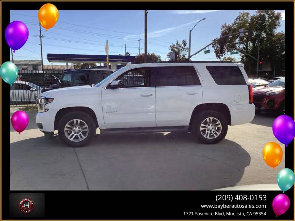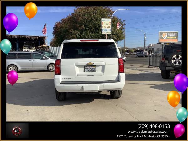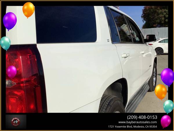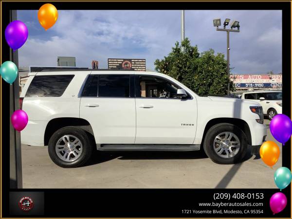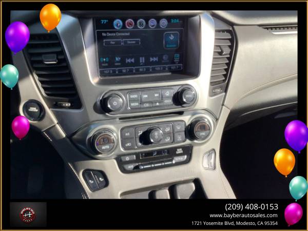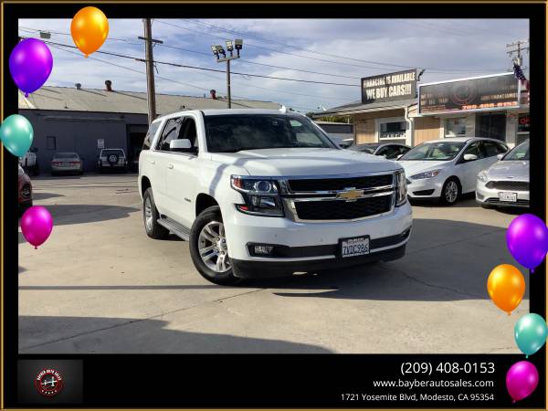 ***2016 CHEVY TAHOE LT***V8 4WD AUTOMATIC***V8 TO V4 CYLINDER GAS SAVING MODE***4 NEW TIRES***LEATHER SEATS***SUNROOF***AUTO SEATS***HEATED SEATS***WIRELESS CHARGER***3 ROWS***BACK UP CAMERA***BLIND SPOT ASSIST***BLUETOOTH***CROSS TRAFFIC ALERT***KEYLESS START***LANE DEPARTURE WARNING***LANE KEEP ASSIST***HANDS FREE LIFTGATE***NAVIGATION***PREMIUM SOUND***POWER PASSENGER SEATS***RAIN SENSING WIPES***REAR AIR CONDITIONING***SEAT MEMORY***LOTS OF TECH AND SAFETY***GREAT FOR FAMILY***GREAT FOR PERSONAL USE***A/C BLOWS COLD***NO ACCIDENTS***FLEX FUEL***SMOOTH RIDE***SPACIOUS VEHICLE***WE BUY CARS***TRADE-INS WELCOME***WE FINANCE***FOR MORE INFO PICTURES AND FREE CAR FAX PLEASE VISIT OUR WEBSITE***1721 YOSEMITE BLVD MODESTO CA 95354***209.408.0153*** We are an Authorized licensed Agency providing auto registration, auto-renewal, auto-transfer, VIN verification out of state transfer. We can also renew register and transfer for bikes, trailers, and boats in Modesto, and surrounding areas. We also buy and sell cars, financing is available on approval of credit we are also auto Brokers. Visit Bayber Auto Sales online at bayberautosales.com to see more pictures and free car fax of this vehicle or call us at 209-408-0153 today to schedule your test drive. Vehicle Disclaimer Extended service Plan And Finance Available. Please bring this ad with you to get the promotional discount price. While we try to make sure that all prices and options posted here are accurate at all times there may be some typographical errors that may appear on the site. If the posted price or options for a particular vehicle or service is incorrect due to typographical or other errors Bayber Auto Sales will endeavor to provide the correct information as soon as the mistake/error is discovered. However this dealership cannot be responsible for such typographical errors. Listed Price excludes government fees and taxes any finance charges any dealer document preparation charges. THIS SALE PRICE EXPIRES THE NEXT DAY OF THE ADD... We are an Authorized licensed Agency providing auto registration auto-renewal auto-transfer VIN verification out of state transfer. We can also renew register and transfer for bikes trailers and boats in Modesto and surrounding areas. We also buy and sell cars financing is available on approval of credit we are also auto Brokers., Vehicle Runs Well, Smooth ride, Must test drive, Rear seat entertainment, Available Satellite Radio, Factory GPS, Title in possession, Single owner, Drives great, Non-smoker owner, New floor mats, Arctic cold a/c, Family friendly