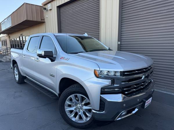 Now offering an excellent 2019 Chevrolet Silverado 1500 LTZ Crew Cab 4WD that is Silver in color and that comes with Side Head Curtain Airbag, Cruise Control, Traction Control, Stability Control, Electronic Parking Aid, Remote Ignition, Heated Steering Wheel, Leather Steering Wheel, Steering Wheel Mounted Controls, Heated Seats, Ventilated Seats, Premium Package, Parking Camera, Bluetooth, Lane Departure Warning, Power Seats, HID Headlights, Power Liftgate, Premium Wheels, Bed Liner, Running Boards, Towing Package and more. Includes a Clean Title & Carfax report. This one is in fantastic condition inside and out. Come and see the Truck, you will not be disappointed. The discounted price is $29,995, Bank & Credit Union Financing Available. Please call us for more info @ 209-272-1111.