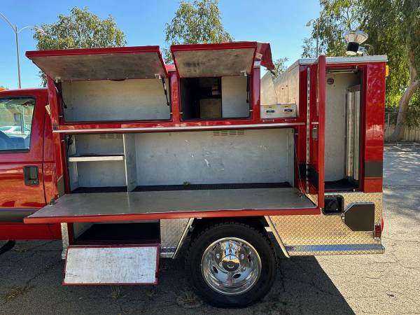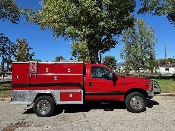 1999 Ford F-550 4x4 Brush Truck, 7.3L Power stroke diesel, auto trans, low 74k miles, A/C, tilt, cruise, power windows and locks, G.T.B. body, 180 g.p.m. capacity, 191 hours, electric hose reels, lighted compartment bins, Ramsey 12000 front winch, runs and operates excellent, just serviced, fleet maintained since new, call for more details.