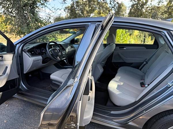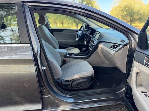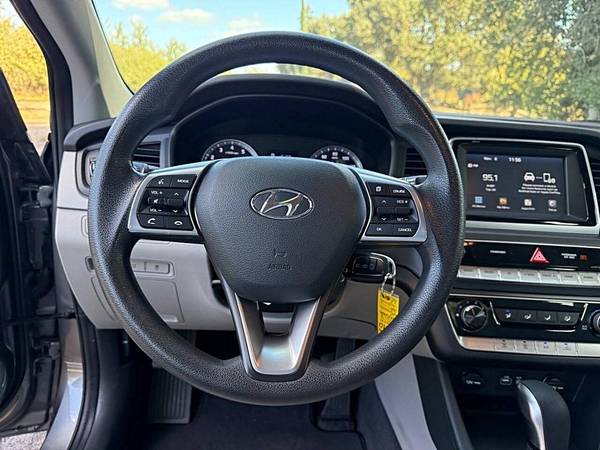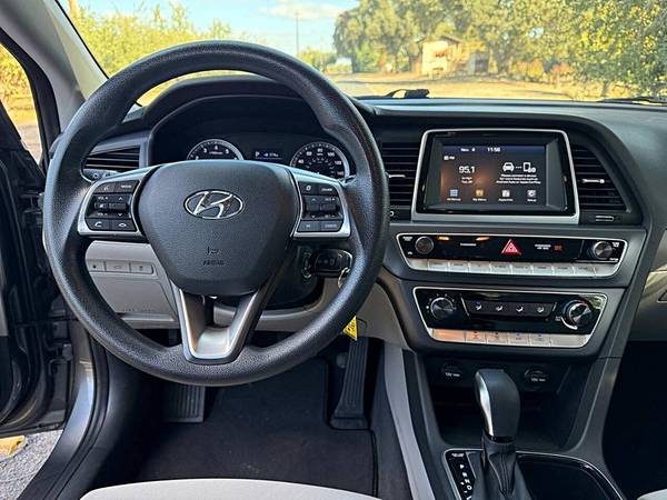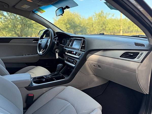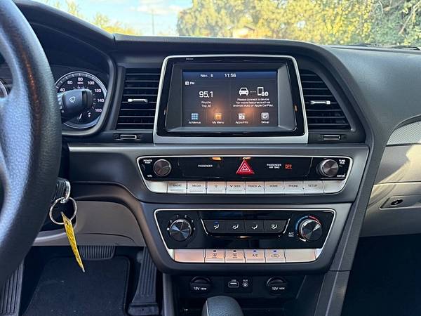 Introducing the 2018 Hyundai Sonata Eco 4dr Sedan Automatic - a sleek and stylish choice for the modern driver. This sedan boasts impressive fuel efficiency, with an EPA-estimated 28 city/37 highway mpg, making it perfect for long commutes or road trips. The Eco trim also features a turbocharged 1.6-liter engine, providing a smooth and responsive driving experience. Its spacious interior offers comfortable seating for up to five passengers and a variety of convenient features such as a rearview camera, Bluetooth connectivity, and USB ports. With its advanced safety features and smart technology, this Sonata is the perfect combination of style and functionality. Upgrade your driving experience with the 2018 Hyundai Sonata Eco. #HyundaiSonataEco #Efficiency #Turbocharged #SleekDesign #UpgradeYourDrive