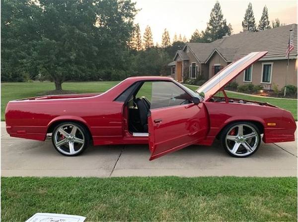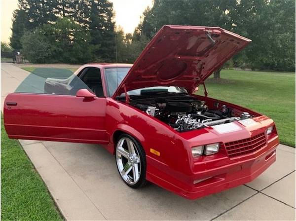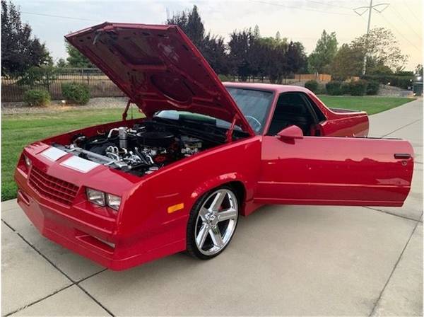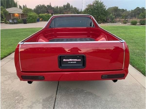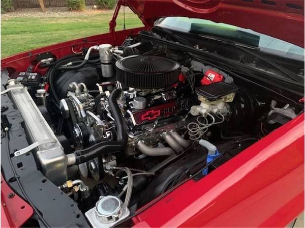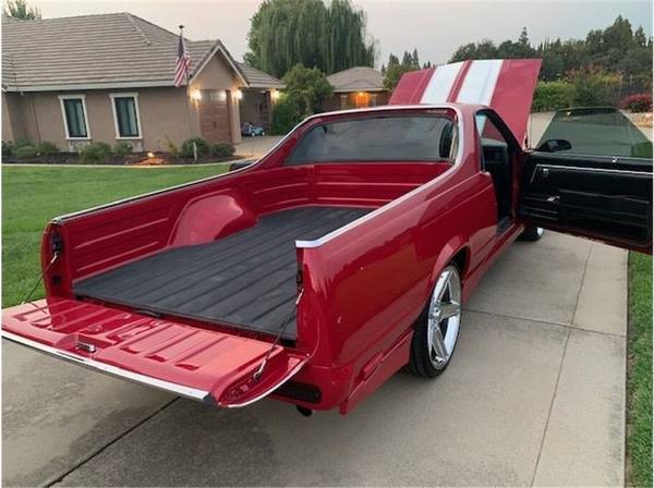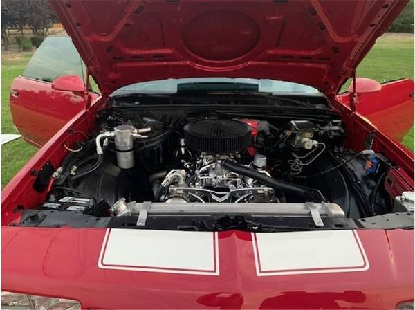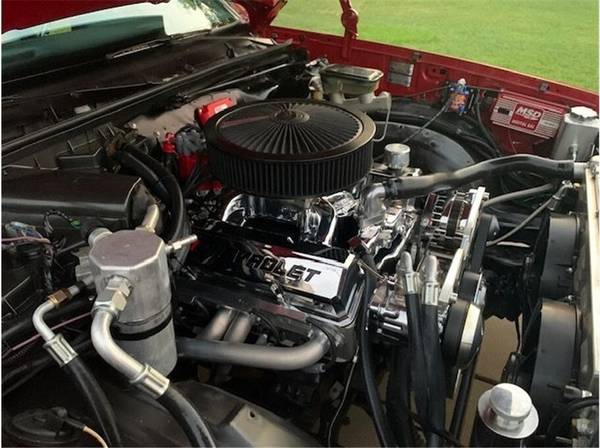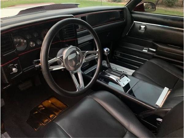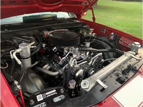 383ci Stoker V8 Holley Atomic EFI Edelbrock Aluminum Intake Manifold March Billet Aluminum Accessory Drive Aluminum Radiator w/Electric Fans Long-Tube Headers Custom Dual Exhaust System Four-Speed Automatic Transmission Red Paint w/White Stripes Black Upholstery Wilwood Disc Brakes 18 Alloy Wheels Monte Carlo-Style Front Fascia Cowl Induction Hood Lower Aero Package Spray-On Bedliner Bucket Seats B&M QuickSilver Shifter Custom Center Console Power Windows Pioneer Touchscreen Infotainment