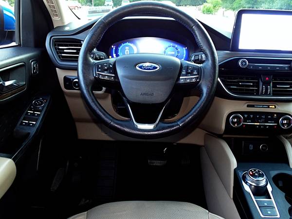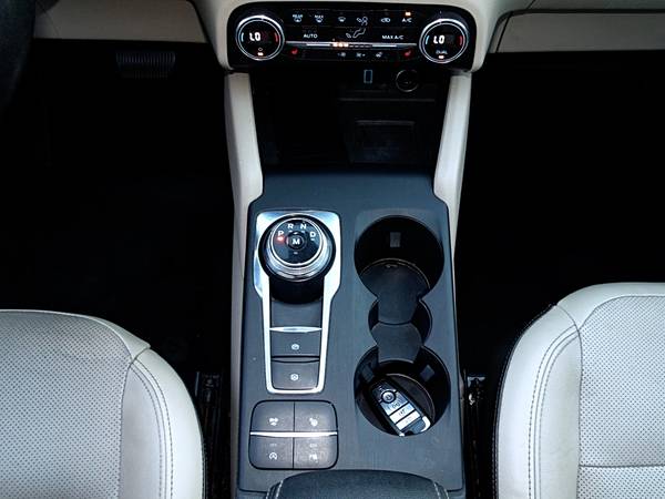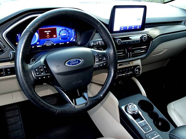 2020 Ford Escape Titanium AWD Automatic, a dynamic and luxurious SUV perfect for any adventure. With its powerful 2.0L EcoBoost engine and intelligent all-wheel drive system, this vehicle offers impressive performance and handling in any terrain or weather condition. The sleek and modern design is complemented by a spacious and comfortable interior, featuring premium leather seats and advanced technology such as a 12.3-inch digital instrument cluster and a 10-speaker Bang & Olufsen sound system. Safety is a top priority with features like lane-keeping assist and adaptive cruise control. Upgrade your driving experience and make every journey unforgettable with the #2020EscapeTitanium. Don't wait, take the wheel and conquer the road today! #FordEscape #LuxurySUV #UnleashYourAdventure