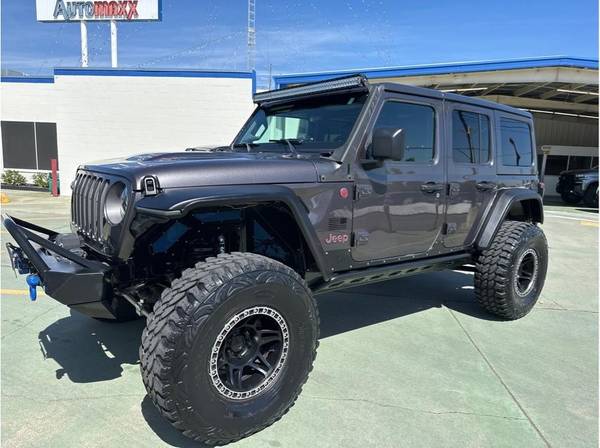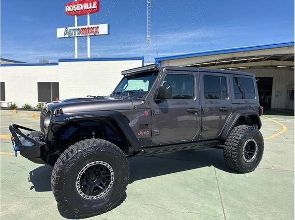 2020 Jeep Wrangler Rubicon - 4 cylinder 2.0L turbo - Lifted and tons of extras on this one - Metal front bumper with smittybilt winch - LED pods and light bar - Fox suspension lift - CB Radio - Rock sliders - Fender liners - Method Race wheels - Leather interior - Metal rear bumper and more! Call ahead to confirm availability 916-772-7500! Ask about the extended warranty!