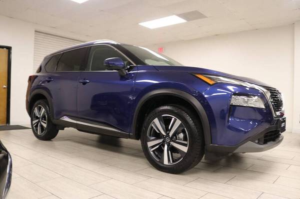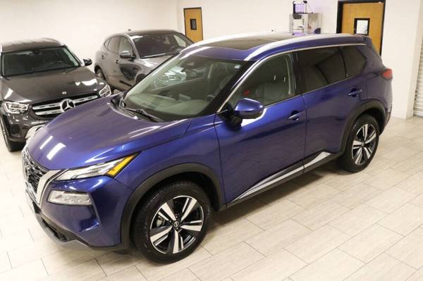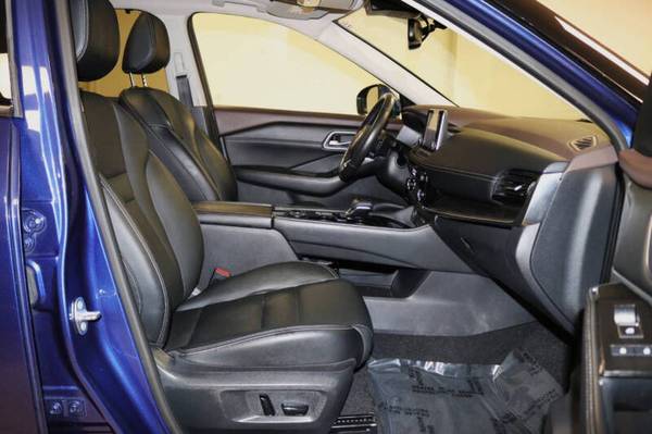 This is a 2021 Nissan Rogue SL AWD Sport Utility 4-Cyl 2.5 Liter AWD Automatic, Ready for all of your family’s adventures, our 2021 Nissan Rogue SL AWD that’s proudly shown off in Magnetic Blue and Black leather interior! panorama moon roof rear view camera, Fueled by an efficient 2.5 Liter 4-Cyl that offers 181hp while perfectly paired with a seamless CVT. This sure-footed All Wheel Drive combination can go practically anywhere, no matter what the condition and rewards you with nearly 32mpg on the highway! A true stand out, the exterior of our Rogue SL is simply beautiful with distinct aluminum heels, a rear privacy glass, LED daytime running lights, and even LED taillights.