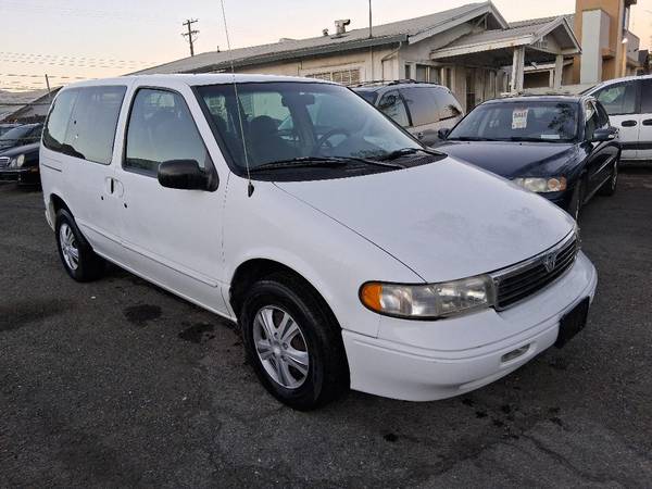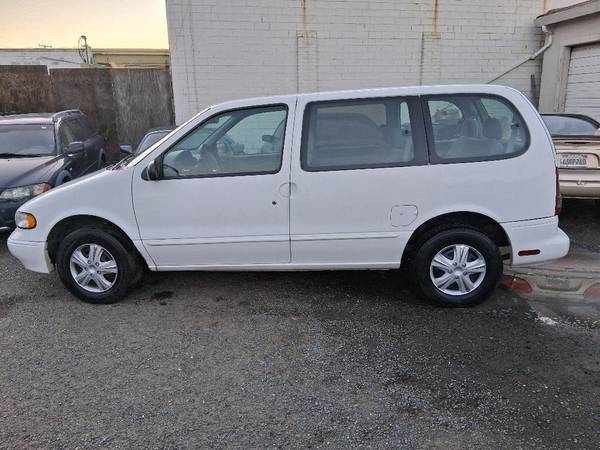 GREAT RELIABLE LIKE NEW GAR. KEPT MINIVAN DEAL ! MADE BY NISSAN...SAME AS NISSAN QUEST ..SUPER LOW Mi. 111k ! GRANDMA'S VERY NICE ENJOYABLE UNMOLESTED 7 PASSENGER MINIVAN ! .. FOR ONLY $2,495. OUT THE DOOR in your name ! peppy 3.0 V6 engine... 4 speed automatic overdrive... GAS SAVER 27 mpg at 65 on cruise.. SHINY WHITE exterior with NICE gray cloth interior, JUST SMOGGED... THIS IS A WONDERFULL TIGHT QUIET SAFE GARAGE KEPT FAMILY VAN... LOOKS, RUNS and DRIVES GREAT...