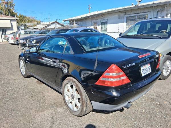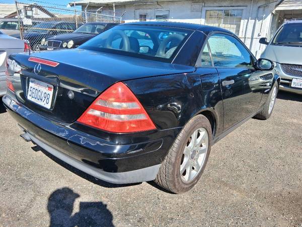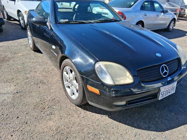 GREAT SUPERCHARGED stick shift CONVERTIBLE CAR DEAL ! SUPER cheap price cuz hardtop does not fold into trunk.... and windshield is cracked LOW MILES... only 168k ! NICE ENJOYABLE garage kept little GERMAN LUXURY hot rod.. VERY peppy 185hp Kompressor 4cyl engine.. 5 speed manual trans... GAS SAVER 31 mpg at 65 on cruise.. shiny BLACK exterior with NICE BLACK LEATHER interior, orig. FACTY 16" facty ALLOYS ... JUST SMOGGED... THIS IS A WONDERFULL FUN TIGHT QUIET CAR ! ...LOOKS OK, RUNS and DRIVES GREAT ! ... NOTE...ALL OUR PRICES ARE... ALL CASH ONLY... and INCLUDE ALL TAXES, 4/2026 LIC. TAGS, SMOG, REG AND DOC. FEES..out the door...IN YOUR NAME... WE PAY FOR and do all the DMV paper work here... FOR YOU !....THIS IS A SUPER SAFE ...VERY AFFORDABLE... VERY CLASSY CAR !