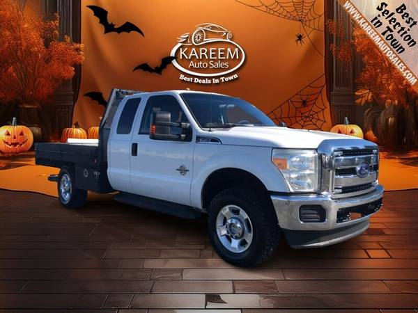 GVWR: 10,600 lb Payload Package, 4WD, 2-Ton Hydraulic Jack, 4-Wheel Disc Brakes, 6" Angular Black Molded in Color Running Board, ABS brakes, Air Conditioning, Brake assist, Dual front impact airbags, Dual front side impact airbags, Electronic Stability Control, Front anti-roll bar, Front reading lights, Low tire pressure warning, Outside temperature display, Overhead airbag, Overhead console, Passenger cancellable airbag, Passenger vanity mirror, Power steering, Rear anti-roll bar, Split folding rear seat, SYNC, Tachometer, Telescoping steering wheel, Tilt steering wheel, Traction control, and Variably intermittent wipers. 4WD/AWD ABS Brakes Air Conditioning Alloy Wheels AM/FM Stereo Automatic Transmission Cassette Player CD Audio Cloth Seats Cruise Control Power Locks Power Mirrors Power Windows Running Boards Turbo Diesel Engine Flat Bed