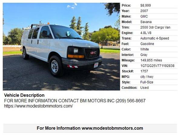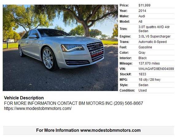 FOR MORE INFORMATION CONTACT BM MOTORS (209) 566-8667 www.ModestoBMMotors.com