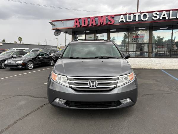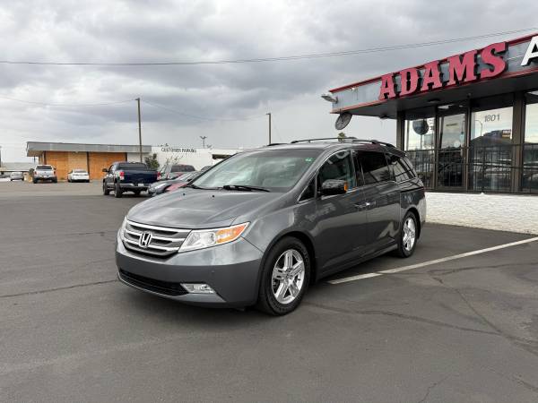 Luxurious and family-friendly, our 2012 Honda Odyssey Touring is shown in sleek Alabaster Silver Metallic. Powered by a 3.5 Liter V6 that offers 248hp while tied to a 6 Speed Automatic transmission that offers easy passing maneuvers. Our Front Wheel Drive Odyssey scores nearly 27mpg on the road, making those family outings easy on your wallet. Surprisingly sporty and fun to drive, this minivan will impress you. The aerodynamic exterior design of the Odyssey adds style as well as function with a lightning-bolt side profile and sculpted bumper.