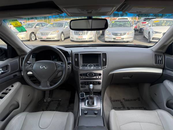 Radiating premium good looks inside and out, our 2013 INFINITI G37 Sedan with the Premium Package is practically irresistible in Smoky Quartz! Powered by a 3.7 Liter V6 that offers 325hp while connected to a responsive 7 Speed Automatic transmission. With just one test drive, you'll be incredibly impressed with the acceleration of this Rear Wheel Drive and love the precise handling, and enjoy the reward of nearly 27mpg on the highway. Sleek and curvaceous, our G37 struts its stuff with alloy wheels, automatic xenon headlights, and fog lights.
