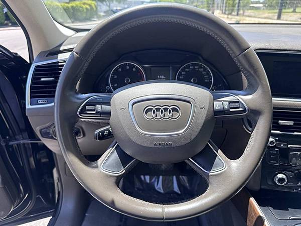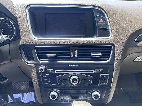 Our 2014 Audi Q5 2.0T Premium quattro in stunning Brilliant Black will cosset you on every drive. Motivated by a TurboCharged 2.0 Liter 4 Cylinder producing 220hp paired to an 8 Speed Automatic transmission to send you to 60mph in 7 seconds and on the way to a top speed of 130mph. Our All Wheel Drive luxury SUV is an incredible road-tripping machine, providing nearly 30mpg on the road, a smooth, relaxing ride, and impressive versatility. Additionally, its attractive styling is enhanced by Audi's signature Singleframe grille and eye-catching alloy wheels. Our Q5 Premium's spacious interior features high-quality materials, plentiful amenities, and plenty of room for five passengers. The power front seats are all-day comfortable and you will also find niceties such as a multi-function steering wheel, ambient lighting, and tri-zone automatic climate control. Additionally, the infotainment system features available satellite radio, a USB input with iPod integration, and concert-quality audio for your entertainment needs. Our Audi includes a wide variety of safety technologies to help keep you and your passengers safe from harm. Rain-sensing wipers, ABS, advanced airbags, and stability/traction control are just a few of the systems on hand for your peace of mind. Our Q5 is ready to go on an adventure with you, so Save this Page and Call for Availability. We Know You Will Enjoy Your Test Drive Towards Ownership!