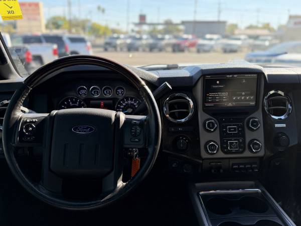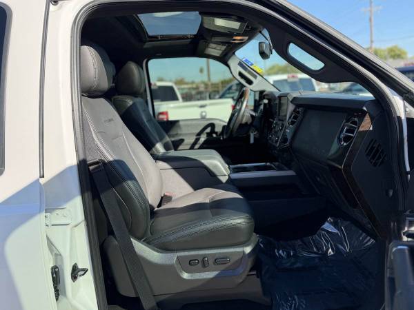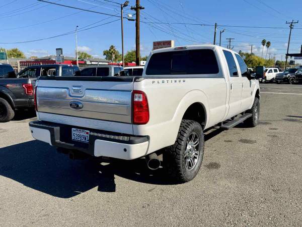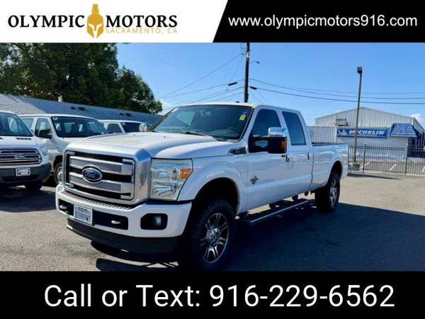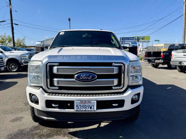 Trim: Platinum pickup Mileage: 164k miles Exterior Color: White Platinum Metallic Tri-Coat Interior Color: Black Engine: 6.7L 8 Cylinders Drive: 4wd Transmission: Automatic VIN: 1FT8W3BT0FEC80346 Seller Comments: Experience ultimate power paired with innovative luxury in our 2015 Ford F-350 Platinum Crew Cab 4X4 in stunning White Platinum.Powered by a TurboCharged 6.7 Liter PowerStroke Diesel V8 that offers 440hp and an incredible 860 lb-ft of torque while connected to an HD 6 Speed TorqShift SelectShift Automatic transmission allows you to push this truck to the extremes.With a great payload and towing capacity of up to 26,500lbs, this Four Wheel Drive Ford can confidently tackle your toughest jobs while bright chrome 6-inch angular step bars, a sunroof, matching topper, and a satin chrome grille are among the sleek features that turn heads. Inside our Platinum, be pampered by a wealth of amenities.Slide into heated leather seats with perforated inserts while gripping a leather-wrapped steering wheel with a heated wood accent.Also included are dual-zone automatic climate control, a rearview camera, and plenty of powerpoints to keep everyone charged.Take advantage of SYNC with MyFord Touch navigation, which allows hands-free communication and up-to-date info.Just imagine yourself behind the wheel listening to your favorite tunes on a premium Sony audio system with available satellite radio as you make your way to this strong machine. You'll drive this Ford confidently, knowing you are protected by six airbags, an SOS post-crash alert, Roll Stability Control, and other advanced safety features.Make a powerful first impression with this commanding F-350 Platinum! Save this Page and Call for Availability.We Know You Will Enjoy Your Test Drive Toward Ownership.
