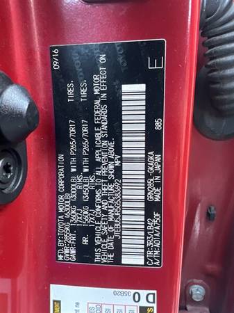 2016 Toyota 4Runner SR5 Premium SUV Exterior Color: Barcelona Red Metallic Interior Color: Tan VIN: JTEBU5JR5G5383692 Stock Number: 1631 License Plate: NP Mileage: 258,278 MPG: 17 City / 21 Highway...