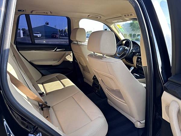 With an agile yet rugged design and ultimate versatility, our 2017 BMW X3 sDrive28i presented in Carbon Black Metallic is the perfect traveling companion no matter the destination! Powered by a TurboCharged 2.0 Liter TwinPower 4 Cylinder that offers 240hp with an 8 Speed Steptronic Automatic transmission. This Rear Wheel Drive SUV sprints to 60mph in just 6.2 seconds while scoring nearly 28mpg on the highway. Our sDrive28i boasts an athletic stance complemented by V-spoke lightweight alloy wheels, LED fog lights, privacy glass, a power tailgate, satin aluminum roof rails, and chrome tailpipe finishers. Enjoy versatility as the trunk expands from 27.6 cubic feet to 63.3 cubic feet when the rear seat is folded down, giving you multiple storage possibilities. Inside our sDrive28i, take note of the premium seating, ambient lighting, wood trim with chrome accents, 3-spoke leather-wrapped multi-function sport steering wheel, and power-adjustable front seats. You'll appreciate many amenities, including advanced vehicle and key memory, automatic climate control, and rain-sensing wipers as you connect to your digital world via the iDrive interface, Bluetooth®, and HiFi sound system with HD radio and available satellite radio. Drive with confidence, as quality and safety come standard with BMW, and many innovative features, including advanced airbags, active front headrests, a tire pressure monitor, and dynamic stability control, come standard. This X3 sDrive28i is an extraordinary SUV of performance and utility that will exceed your expectations. Save this Page and Call for Availability. We Know You Will Enjoy Your Test Drive Toward Ownership!