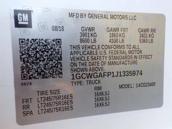 VIN: 1GCWGAFP1J1335974