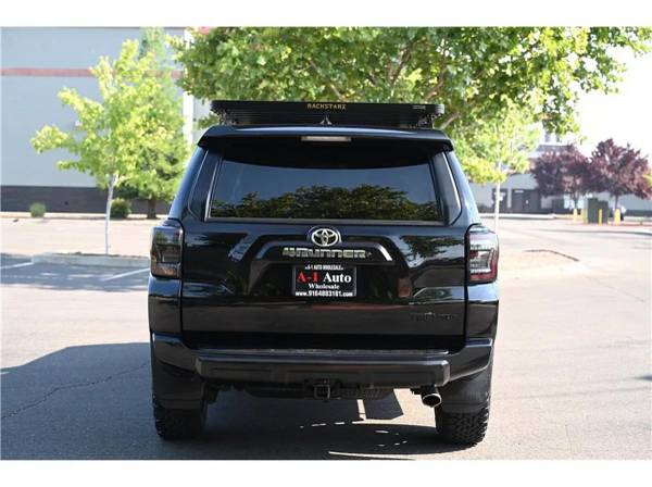 Experience rugged adventure and refined comfort with this 2018 Toyota 4Runner TRD Pro Sport Utility! Dressed in sleek black and boasting only 82,339 miles, this 4WD powerhouse is built for the trail and perfect for everyday driving. Under the hood, the reliable 4.0L V6 engine paired with a 5-speed automatic transmission delivers robust performance and smooth shifts.Loaded with premium features, you'll enjoy heated dual power seats, a user-friendly Entune infotainment system with navigation, Bluetooth connectivity, and a backup camera for added convenience and safety. Off-road enthusiasts will appreciate the oversized 20+ premium wheels, oversize off-road tires, and advanced downhill and hill start assist controls. Plus, the towing package, roof rack, and running boards enhance utility and versatility.With comprehensive safety tech including multiple airbags, stability and traction control, and daytime running lights, this 4Runner provides peace of mind on every journey. Whether tackling rugged terrains or cruising city streets, this TRD Pro combines toughness, style, and comfort. Don't miss the chance to own a well-maintained, adventure-ready SUV at A-1 Auto Wholesaleschedule your test drive today!