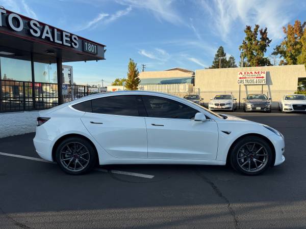 Our 2020 Tesla Model 3 Long Range AWD Sedan looks especially sleek and stylish in Pearl White Multi-Coat. Powered by dynamic Dual Electric Motors offering a combined 346hp paired with a specially engineered Single Speed Automatic transmission for quick sprints to 60mph in 4.4 seconds with a top speed of 145mph. Fly right by gas stations in our All Wheel Drive sedan that has an all-electric range of about 330miles and can see nearly 136MPGe in the city. Muscular lines, LED fog lamps, bold alloy wheels, and a stunning all-glass roof highlight the aerodynamic style of our Model 3.