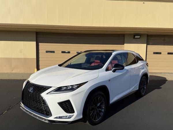 DESCRIPTION: 2021 Lexus RX450 Hybrid F Sport in Ultra White for sale. Clean title has 53,000 miles. No issues runs and drives great. 1 owner vehicle. Fully loaded from the dealer with every single option available. Vehicle has been serviced all its life, never missed a maintenance. Brakes and tires are in excellent condition. Paint is in amazing shape, the red leather interior has no stains or rips. Smoking free. 3.5L 6 cylinder hybrid engine that gets 30 mpg. All original parts never modified.