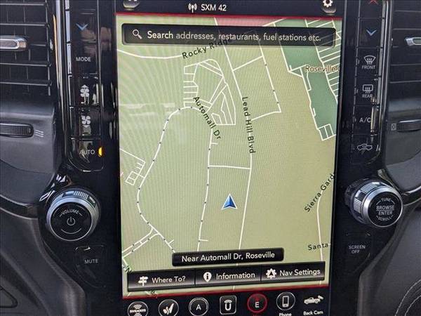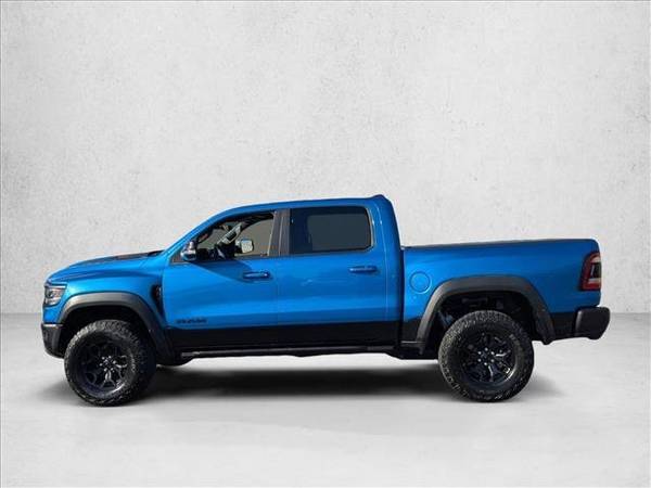 * Trx Level 1 Equipment Group * Harman/Kardon 19 Speaker Premium Sound * Mopar Rock Rails * Blind Spot & Cross Path Detection * Leather Seats * Surround View Camera System * Navigation System * Parksense Front/Rear Park Assist W/Stop * Lower Two Tone Paint * Remote Start System * Hydro Blue Pearlcoat * Keyless Start * Black; Leather Trimmed Bucket Seats * Diamond Black Crystal Pearlcoat * Engine: 6.2L Supercharged Hemi V8 Srt * Front License Plate Bracket * Transmission: 8-Speed Automatic (8Hp95) * Wheels: 18" X 9" Black Paint/Polish AluminumThis vehicle includes a Money-Back Guarantee* and passed our precise inspection process. Best of all the price you see is the price you pay. No haggling. No back and forth. No pressure. And this price is so good it is guaranteed. *Money-Back Guarantee is valid for 5 days or 250 miles, whichever comes first. Subject to certain terms and conditions. See store for details. Some restrictions apply.AutoNation Chrysler Dodge Jeep Ram Roseville is excited to offer this 2021 Ram 1500 TRX. This Ram includes: ENGINE: 6.2L SUPERCHARGED HEMI V8 SRT (STD) Supercharged 8 Cylinder Engine Gasoline Fuel *Note - For third party subscriptions or services, please contact the dealer for more information.* Pull up in the vehicle and the valet will want to parked on the front row. This Ram 1500 TRX is the vehicle others dream to own. Don't miss your chance to make it your new ride. Want to brave the road less traveled? You'll have the 4WD capabilities to do it with this vehicle. The incredibly low mileage and painstaking upkeep on this Ram 1500 makes it a once-in-a-lifetime deal that won't last long! Call us today to reserve your test drive!