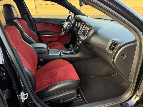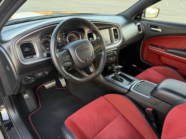 DESCRIPTION: 2022 Dodge Charger Scat Pack in Pitch Black for sale. Has only 19,000 miles on it. 1 Owner vehicle, serviced regularly all its life. 6.4L V8 Engine pushing 485 horsepower. The vehicle runs and drives great. Paint is in great condition as it was just buffed and polished. The black Nappa leather and Alcantara interior is in excellent condition with no tears or stains. It has never been exposed to smoking. The tires and brakes in great shape. Equipped with the Dynamics Package. This 2022 Dodge Charger holds a rebuilt salvage title due to minor damage. The vehicle ran over a curb and was not involved in an accident. Carfax and pictures can be provided to show the extent of the damages. On the bright side, it has undergone a comprehensive inspection, and any necessary repairs have been made to bring it back to meet and exceed OEM specifications. No issues and ready to go to its new owner.