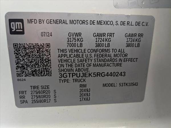 * Navigation System * Tires; 275/60R20Sl All-Terrain; Blackwall * Lane Keeping Assist * Keyless Start * Audio System; 13.4" Diagonal Premium Gmc Infotainment System With Google Built In Apps Such As Navigation And Voice Assistance; Includes Color Touch-Screen; Multi-Touch Display; AM/FM Stereo * Elevation Preferred Equipment Group * Emissions Override; Federal * Emissions; Connecticut; Delaware; Maine; Maryland; Massachusetts; New Jersey; New York; Oregon; Pennsylvania; Rhode Island; Vermont And Washington State Requirements * Engine; Turbomax * Jet Black; Cloth Seat Trim * License Plate Kit; Front * Rear Axle; 3.42 Ratio * Seats; Front 40/20/40 Split-Bench * Steering Column Lock; Electrical * Summit White * Transmission; 8-Speed Automatic; (Column Shifter) Electronically Controlled * Wheels; 20" X 9" (50.8 Cm X 22.9 Cm) 6-Spoke High Gloss Black Painted AluminumAutoNation Subaru Roseville is excited to offer this 2024 GMC Sierra 1500 Elevation. This GMC includes: ENGINE, TURBOMAX 4 Cylinder Engine Gasoline Fuel Turbocharged *Note - For third party subscriptions or services, please contact the dealer for more information.* Put performance, safety, beauty, sophistication and all the right amenities into a car, and here it is! Now you can own luxury without the luxury price tag! With 4WD, you can take this 2024 GMC Sierra 1500 Elevation to places roads don't go. It's all about the adventure and getting the most enjoyment out of your new ride. The GMC Sierra 1500 Elevation will provide you with everything you have always wanted in a car -- Quality, Reliability, and Character.