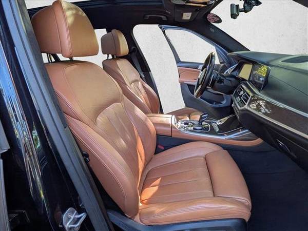 * M Sport Package * Premium Package * Luxury Seating Package * Cognac; Vernasca Leather Upholstery * Wheels: 22" X 9.5" Fr & 22" X 10.5" Rr V-Spoke * Integral Active Steering * Head-Up Display * Anthracite Alcantara Headliner * Harman/Kardon Surround Sound System * Leather Dashboard * Second-Row Captain'S Chairs * Multi-Contour Seats * M Sport Brakes * Panoramic Roof * Trailer Hitch - 7;500 Lb Towing Limit * Front Ventilated Seats * Leather Seats * Navigation System * 3rd Row Seat * Extended Shadowline Trim * Remote Engine Start * Heated Front Seats Armrests & Steering Wheel * Keyless Start * Rear Spoiler * Heads-Up Display * Cooled Front Seat(S) * Brown-Metallic Ash Grain Wood Trim * Carbon Black MetallicThis vehicle includes a Money-Back Guarantee* and passed our precise inspection process. Best of all the price you see is the price you pay. No haggling. No back and forth. No pressure. And this price is so good it is guaranteed. *Money-Back Guarantee is valid for 5 days or 250 miles, whichever comes first. Subject to certain terms and conditions. See store for details. Some restrictions apply.Roseville BMW This BMW includes: TRAILER HITCH Tow Hitch LUXURY SEATING PACKAGE Seat-Massage Cooled Front Seat(s) Seat Memory Power Passenger Seat Power Driver Seat Heated Front Seat(s) Bucket Seats CARBON BLACK METALLIC M SPORT BRAKES FRONT VENTILATED SEATS Cooled Front Seat(s) Heated Front Seat(s) LEATHER DASHBOARD HEATED FRONT SEATS ARMRESTS Heated Steering Wheel HEAD-UP DISPLAY Heads-Up Display SECOND-ROW CAPTAIN'S CHAIRS Rear Bucket Seats Bucket Seats HARMAN/KARDON SURROUND SOUND SYSTEM Premium Sound System BROWN-METALLIC ASH GRAIN WOOD TRIM Woodgrain Interior Trim ANTHRACITE ALCANTARA HEADLINER WHEELS: 22 Tires - Front Performance Aluminum Wheels Tires - Rear Performance PREMIUM PACKAGE Remote Engine Start Heads-Up Display Premium Sound System MULTI-CONTOUR SEATS Seat Memory Power Passenger Seat Power Driver Seat Bucket Seats M SPORT PACKAGE Aluminum Wheels Woodgrain Interior Trim COGNAC, VERNASCA LEATHER UPHOLSTERY Leather Seats INTEGRAL ACTIVE STEERING All Wheel Steering REMOTE ENGINE START Remote Engine Start EXTENDED SHADOWLINE TRIM *Note - For third party subscriptions or services, please contact the dealer for more information.* Gone are the days of SUVs being the size of a tank and handling like one. This BMW X7 is a perfect example of how SUVs have evolved into vehicles that are as refined as they are rugged. This BMW X7 xDrive40i's level of quality is not meant for just anyone. It's meant for the person who strives for a classy, comfortable, and luxurious car. Simply put, this all wheel drive vehicle is engineered with higher standards. Enjoy improved steering, superior acceleration, and increased stability and safety while driving this AWD BMWX7 xDrive40i. Added comfort with contemporary style is the leather interior to heighten the quality and craftsmanship for the BMW X7 xDrive40i.
